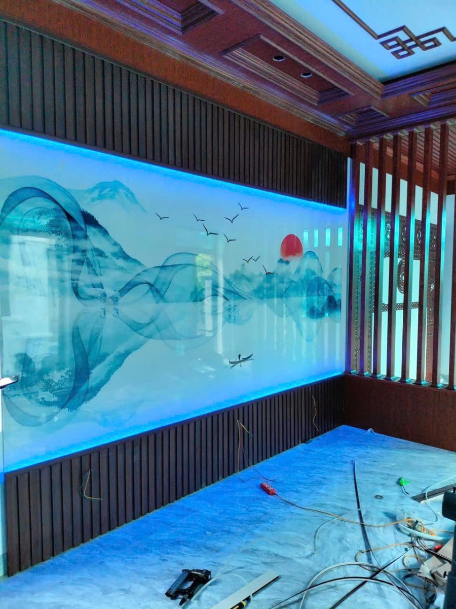 Để tăng thêm tính thẩm mỹ và độc đáo, bạn có thể kết hợp tranh 3D tráng gương với các vật liệu khác như gỗ, đá, kim loại, hoặc đèn LED. Sự kết hợp này sẽ tạo nên những hiệu ứng ánh sáng và chiều sâu ấn tượng, mang đến một không gian sống đẳng cấp và khác biệt. Thi công tranh 3D tráng gương với sự kết hợp vật liệu sẽ tạo hiệu ứng bất ngờ.